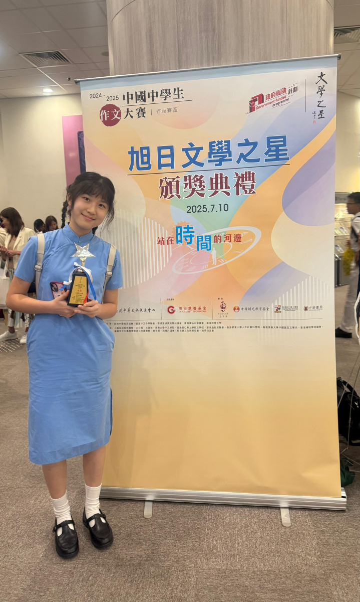 全國中學生作文概念大賽獲獎消息 2025年10月16日 ktls 焦點 在2024-2025全國中學生作文概念大賽中,中四級周安娜同學憑藉其卓越的寫作才華脫穎而出,榮獲初中組銀獎。她以《以時間為友》為題進行創作,文章構思新穎獨特,語言流暢優美,充分展現了周同學的創新思維與深厚的文學素養。