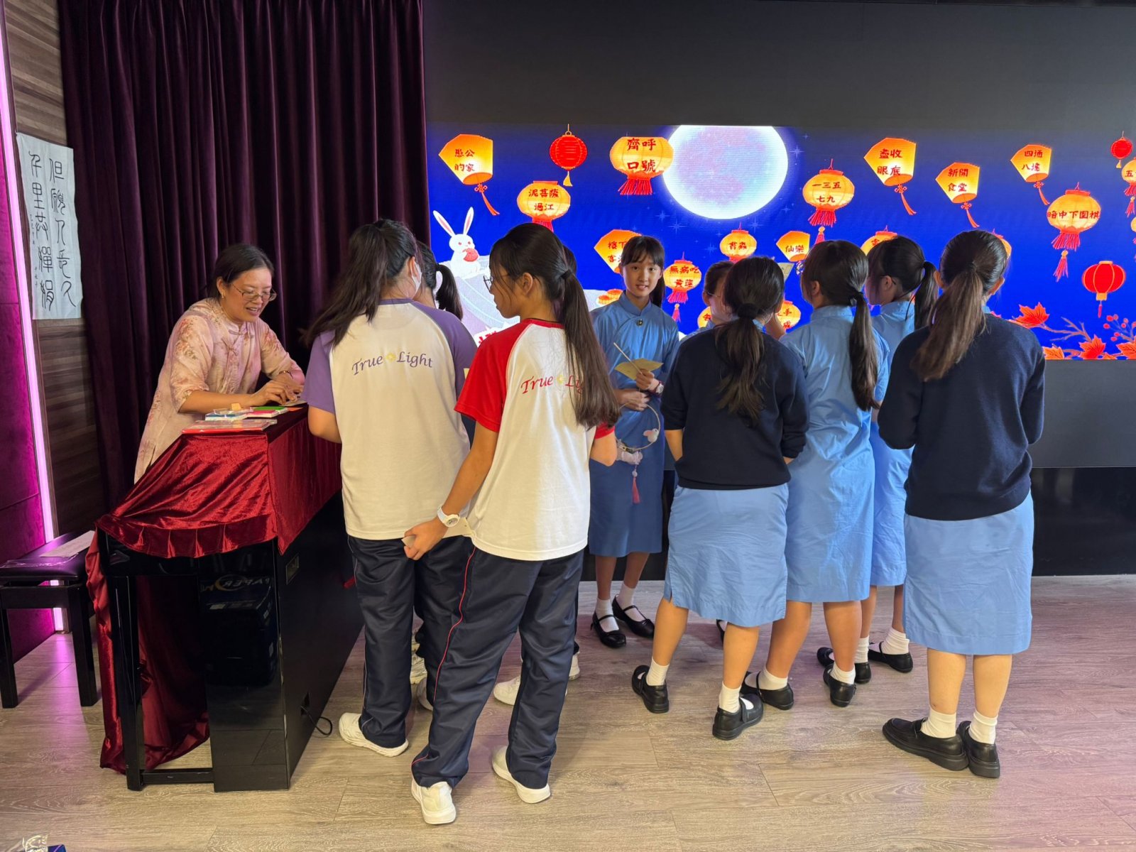 「智趣中秋·學海共圓」活動 2025年10月20日 ktls 焦點 適逢中秋佳節,為弘揚傳統文化、豐富校園生活,中文科舉辦「智趣中秋.學海共圓」活動。午飯時段,校務處外大螢幕展示趣味燈謎,背後暗藏成語玄機;另同學可親手製作燈籠,將祝福帶回家。是次活動將傳統與趣味融合,為同學帶來難忘美好的中秋佳節。