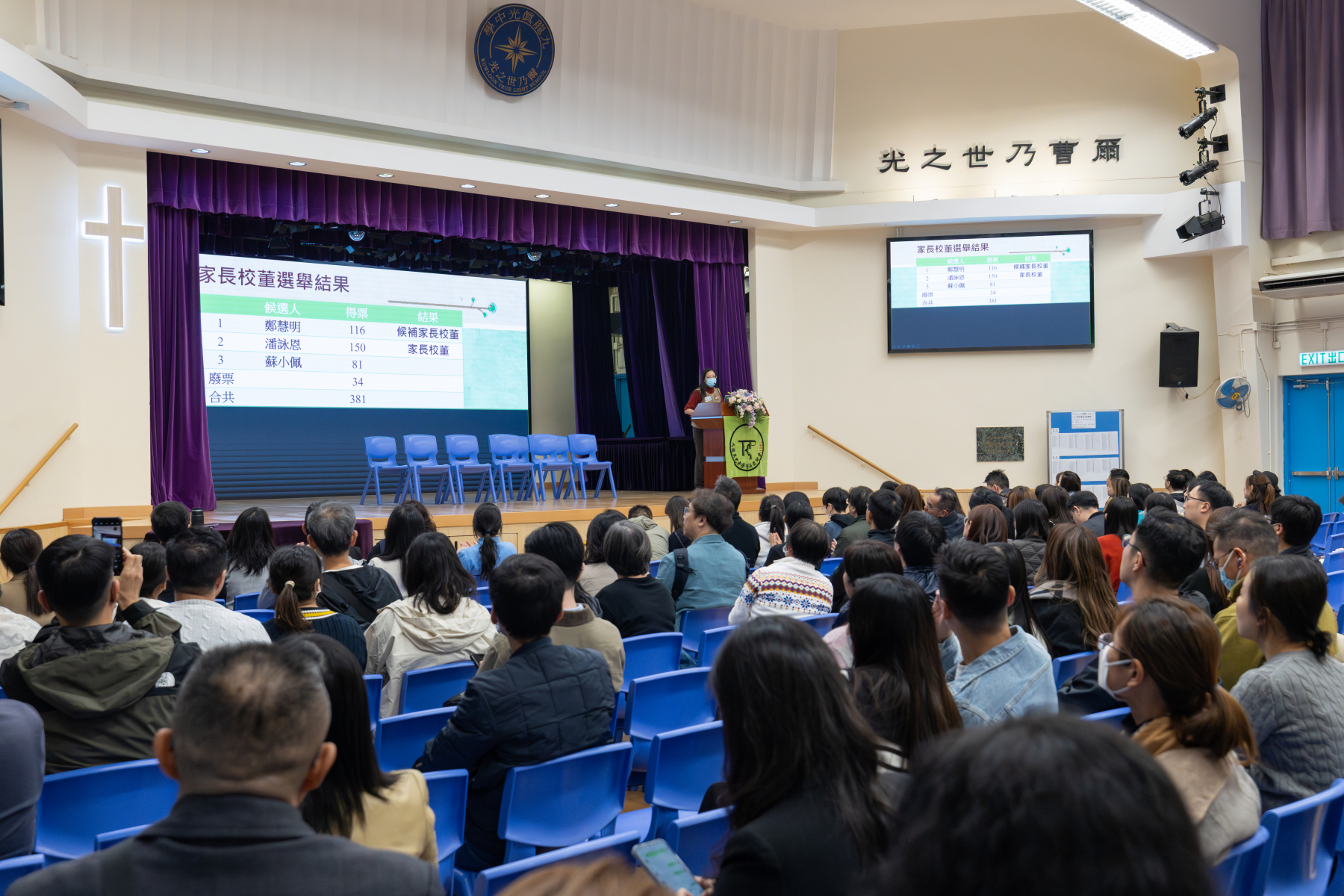 家長教師會第四十二屆周年大會暨2025-27年度「家長校董」選舉及初中各級家長會 2026年1月9日 ktls 焦點 第四十二屆周年大會暨2025至2027年度「家長校董」選舉於11月21日順利舉行,出席人數約二百多人。周年大會中,舉行2025至2027年度法團校董會家長校董選舉,而點票工作於同日晚上八時正圓滿結束。 選舉結果如下: 家長校董 潘詠恩女士 替代家長校董 鄭慧明女士 當晚亦舉行中一及中二家長會,以及中三級高中選修科簡介及選科輔導。當晚大會及講座均有助促進家長及學校的交流,搭建家校溝通橋樑。