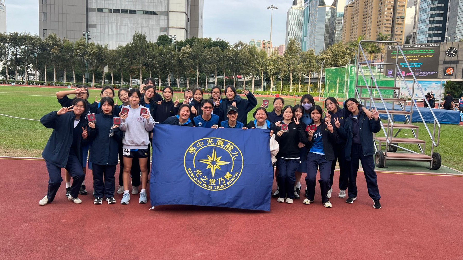 香港學界田徑比賽 2026年4月23日 ktls 焦點 於11月19、24及27日,香港學界田徑(第二組)比賽將順利完成。學生發揮出色獲得不少獎項,得獎名單如下: 組別 姓名 項目 奬項 甲組 中五級 徐綺婷 鉛球 季軍 乙組 中四級 王天愉 標槍 季軍 中三級 蕭可喬 400米 亞軍 200米 殿軍 丙組 中二級 謝梓愉 鐵餅 季軍 中一級 陳不為 800米 殿軍 中一級 陳不為 中一級 葉孝曈 中二級 謝梓愉 中二級 莊皓喬 4X400米接 殿軍